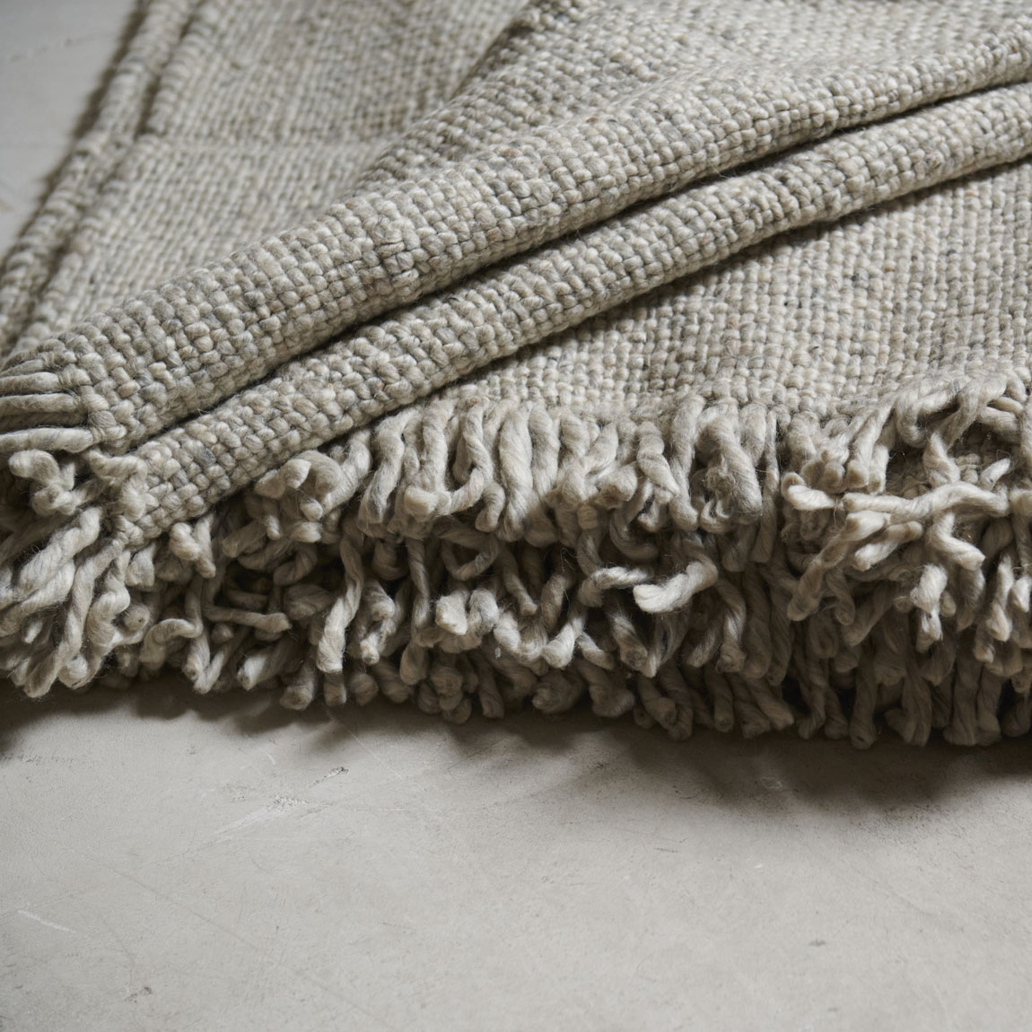 Alfombra de lana color arena. Un bonito y sencillo diseño elaborado a mano con lana 100% neozelandesa. Una expresión de sencillez artesana. Su tono arena suave irradia luz y pureza, aportando calidez a cualquier ambiente.