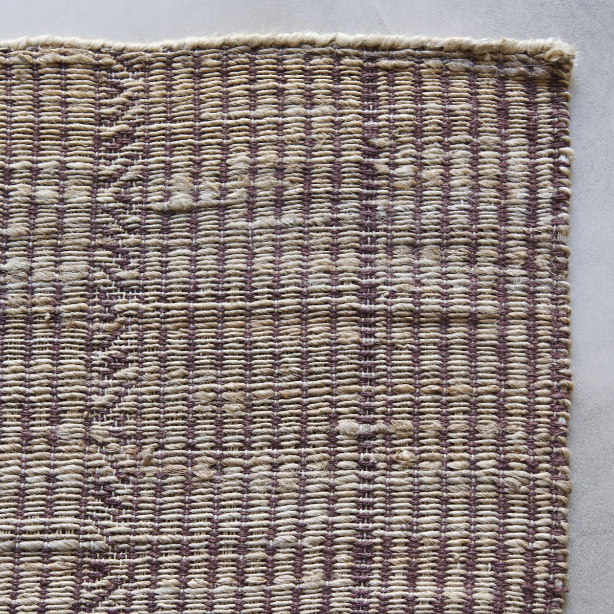 Alfombra de yute del desierto. Confeccionada a mano con una mezcla de yute y algodón, esta alfombra natural se adapta a la mayoría de espacios interiores. El patrón de sus dibujos crea una atmósfera equilibrada y suave. Composición: 90% yute y 10% algodón.