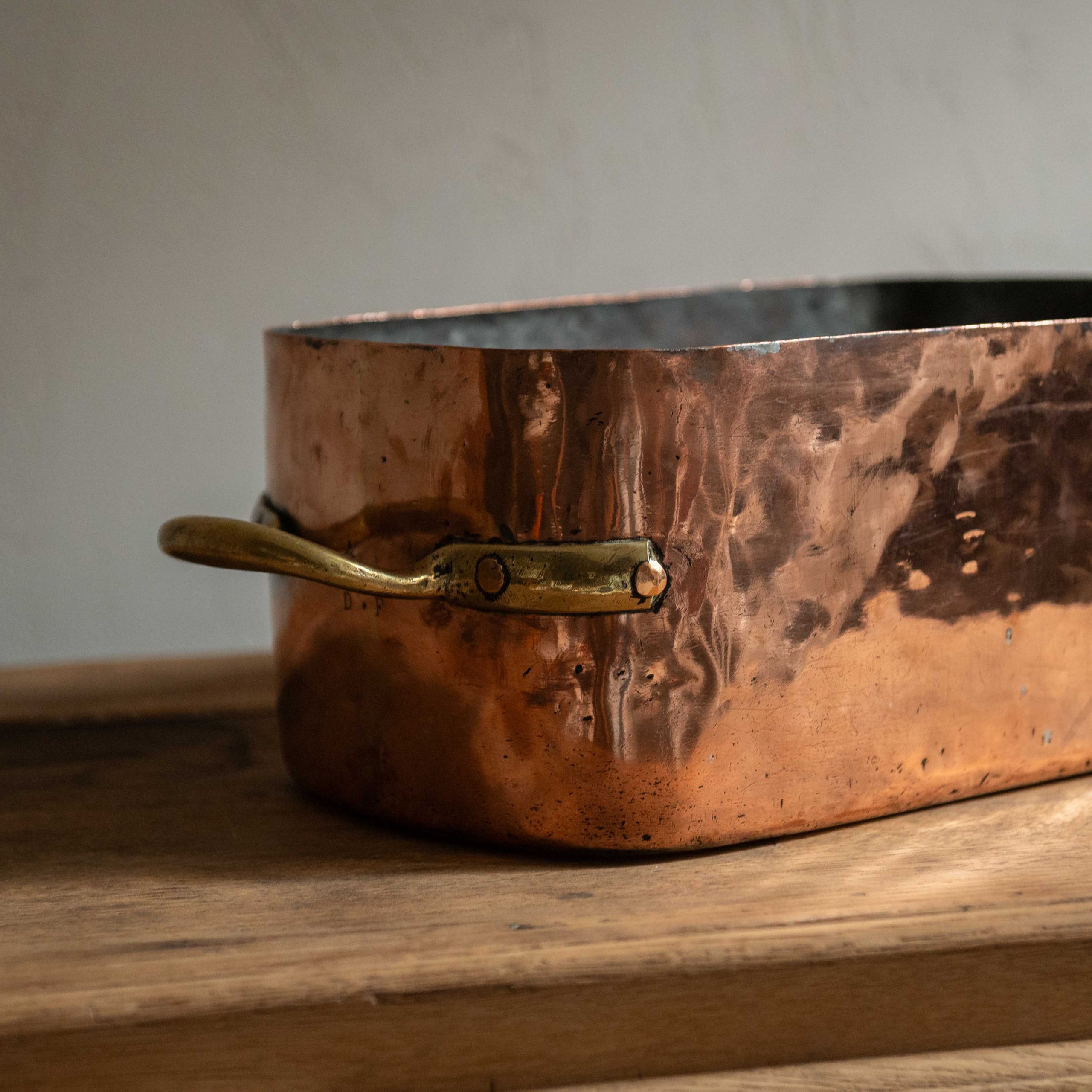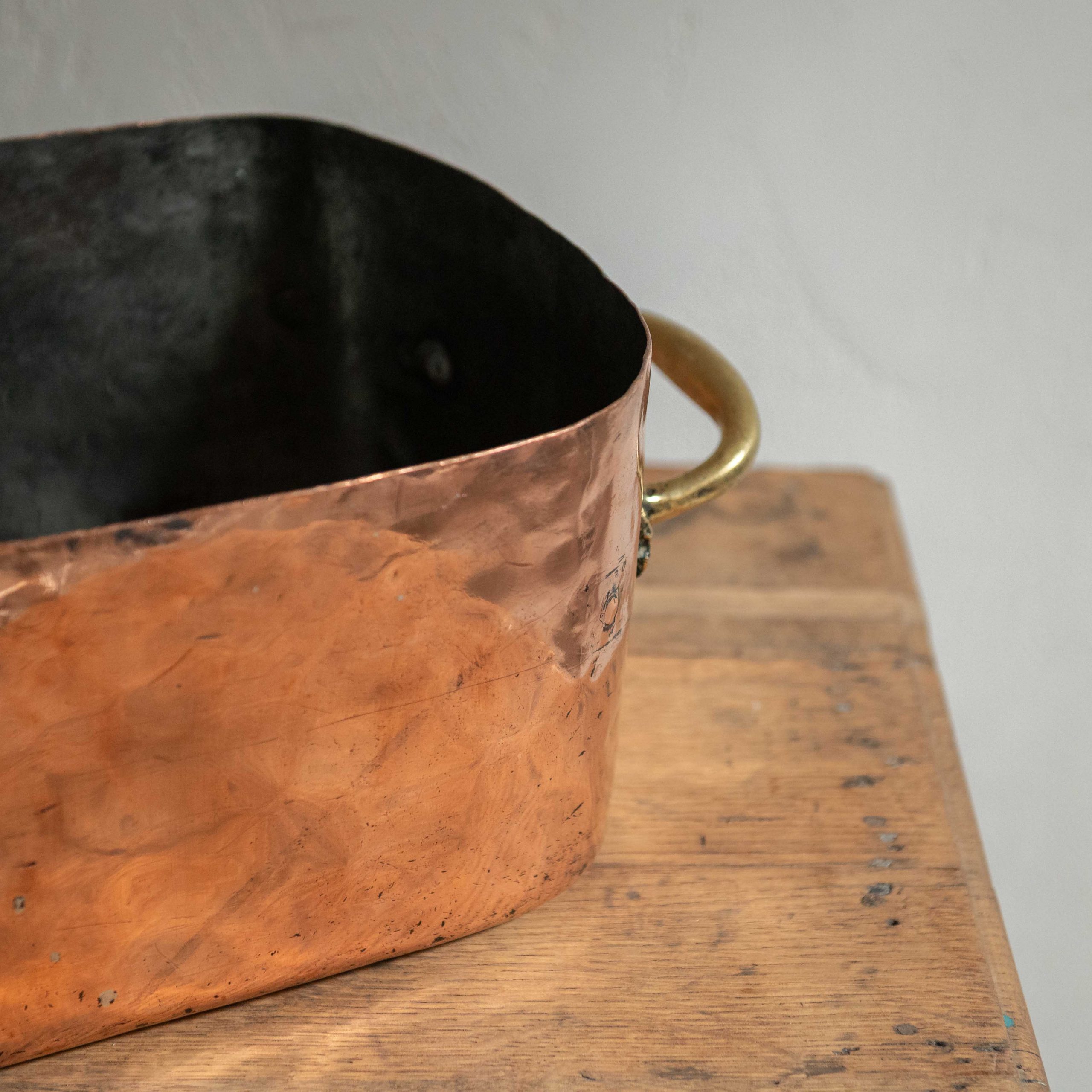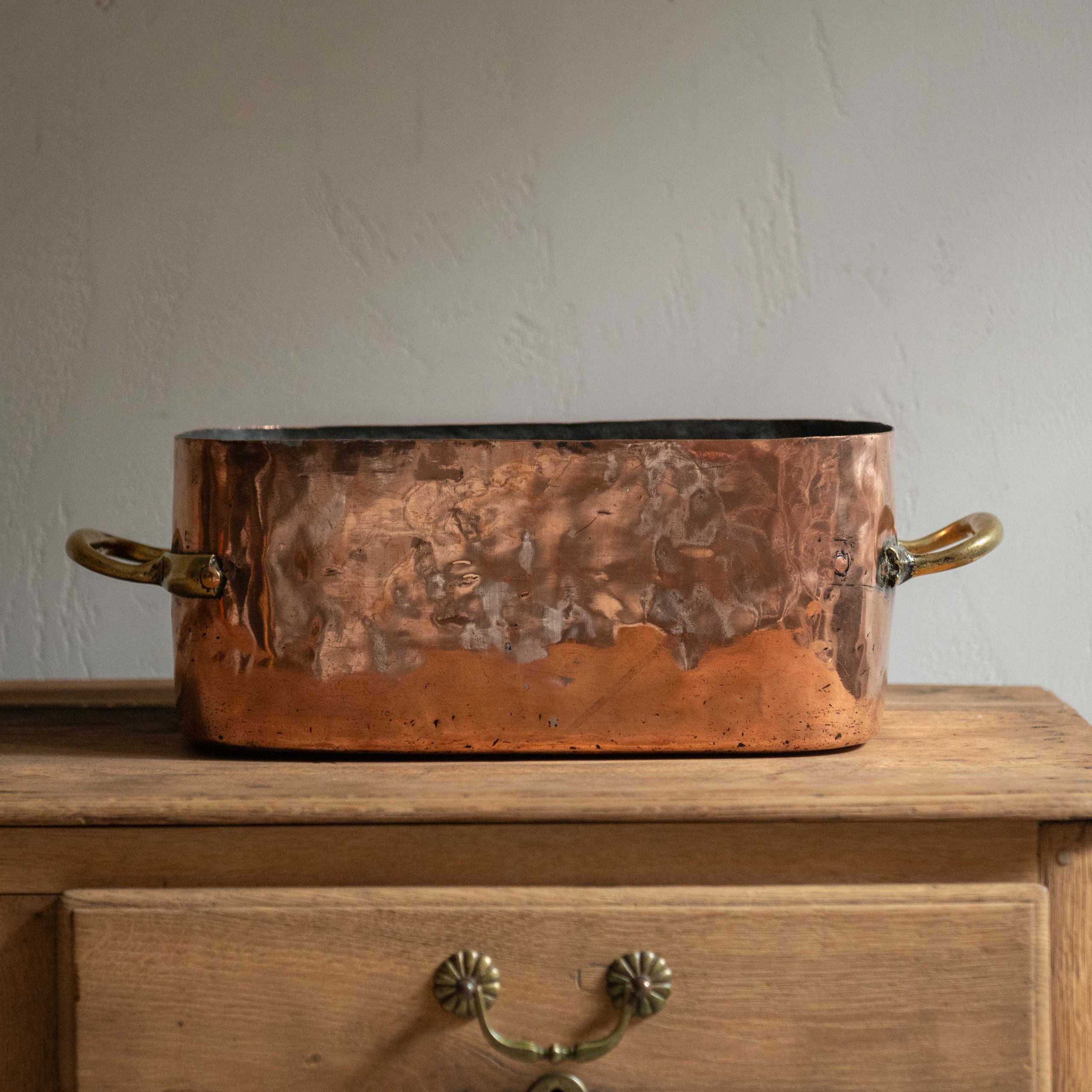 Fuente con asas antigua de cobre. Fabricada artesanalmente su resultado es un conjunto de líneas firmes y elegantes. Su cobre martillado brilla suavemente y guarda el paso del tiempo.