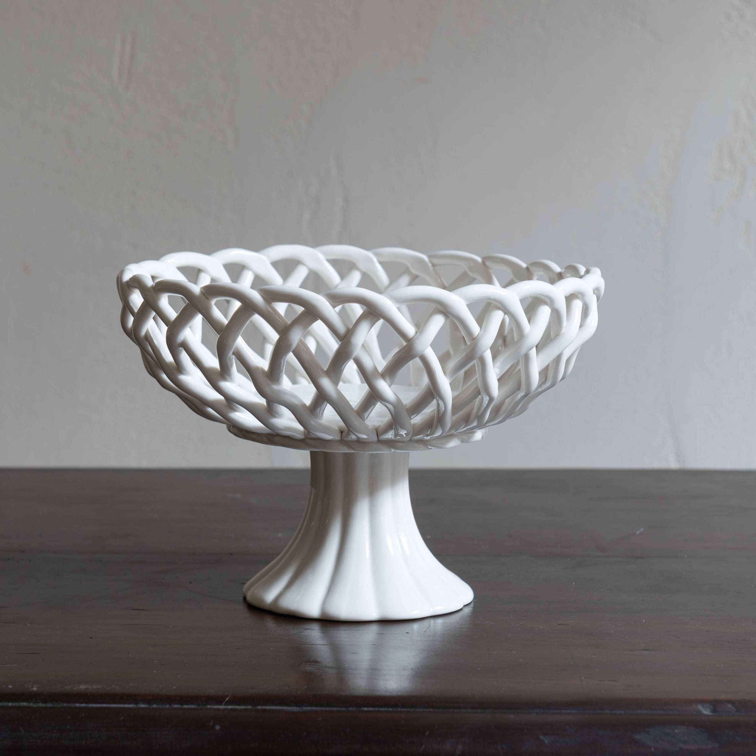Cesta de porcelana decorativa hecha a mano. Una pieza tan sencilla como encantadora que da el toque personal en cualquier espacio.
