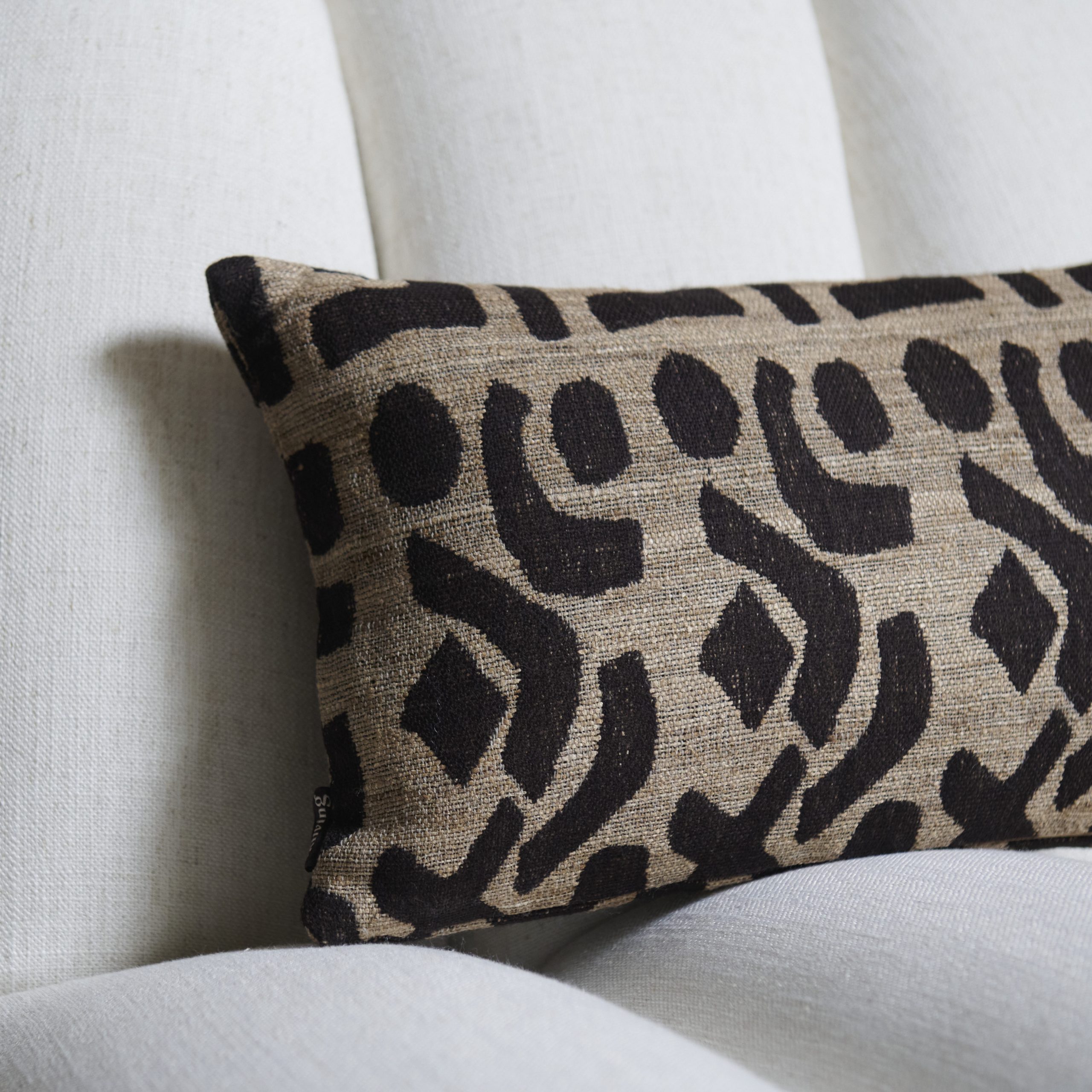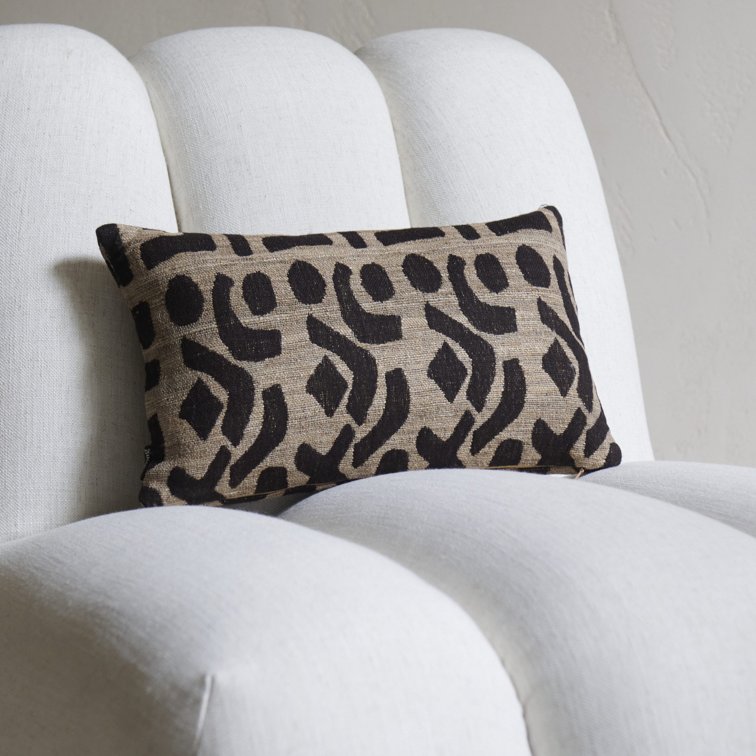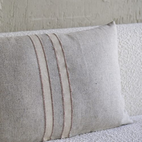 Cojín de lana y seda estilo boho. Atemporal y con colores cálidos marrón y crema.