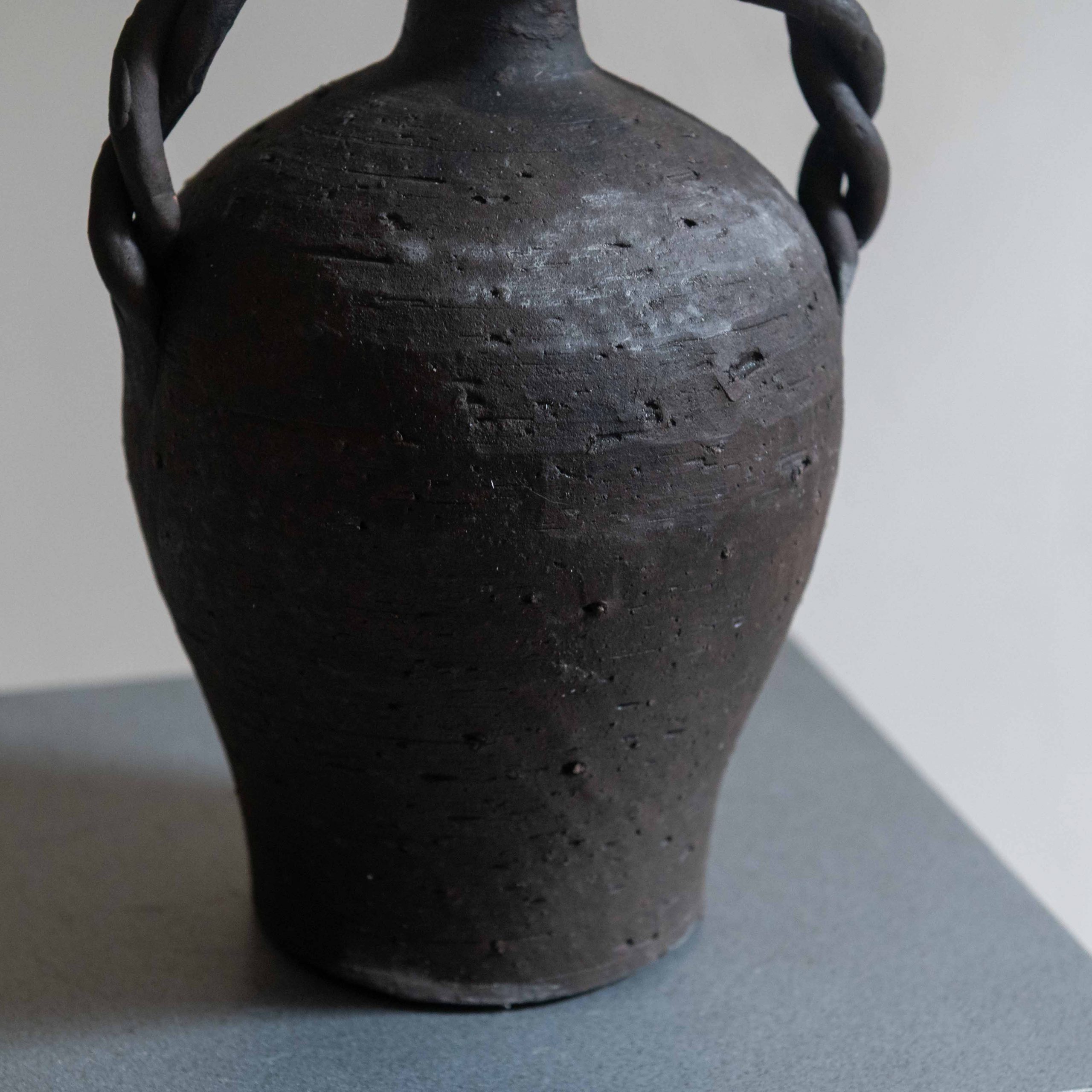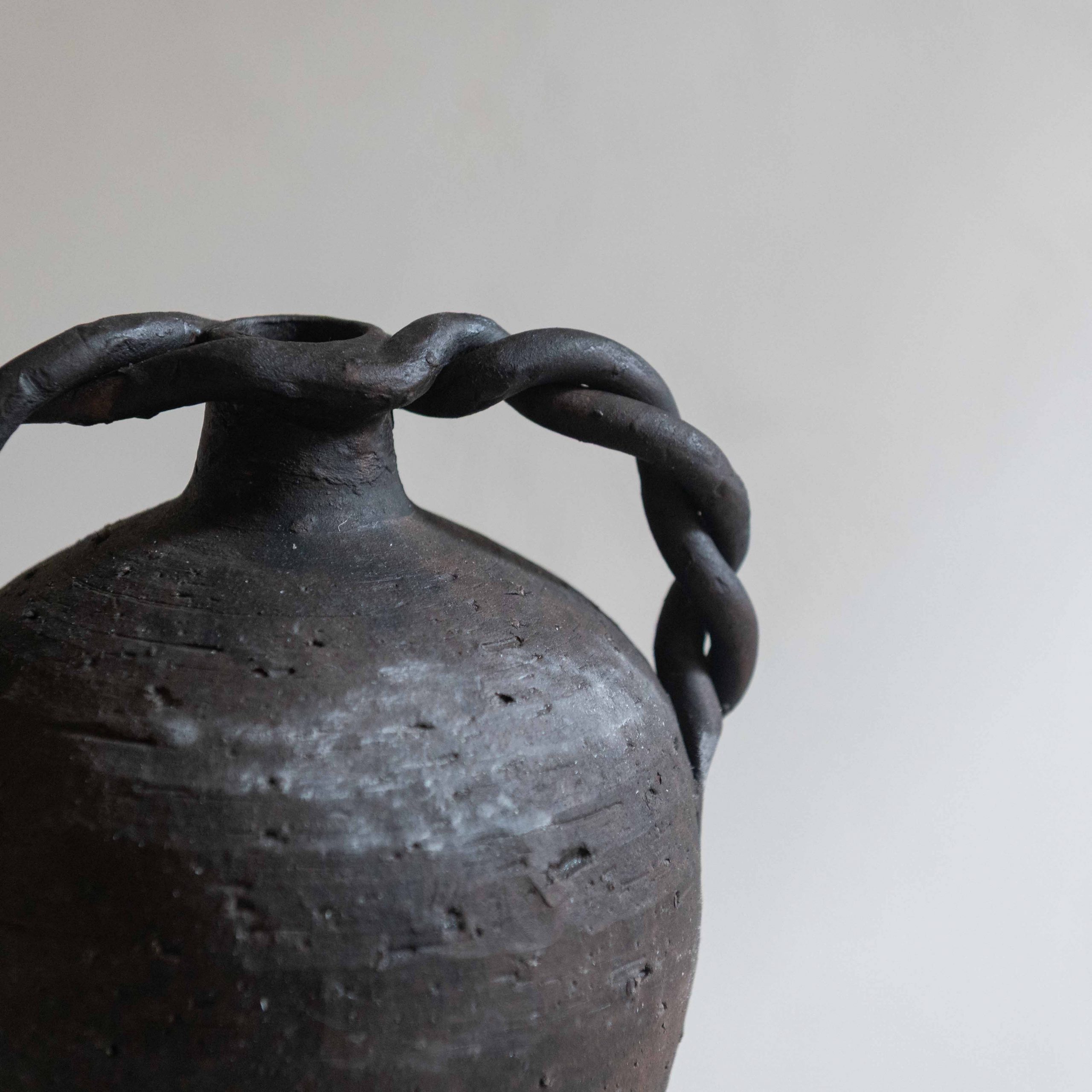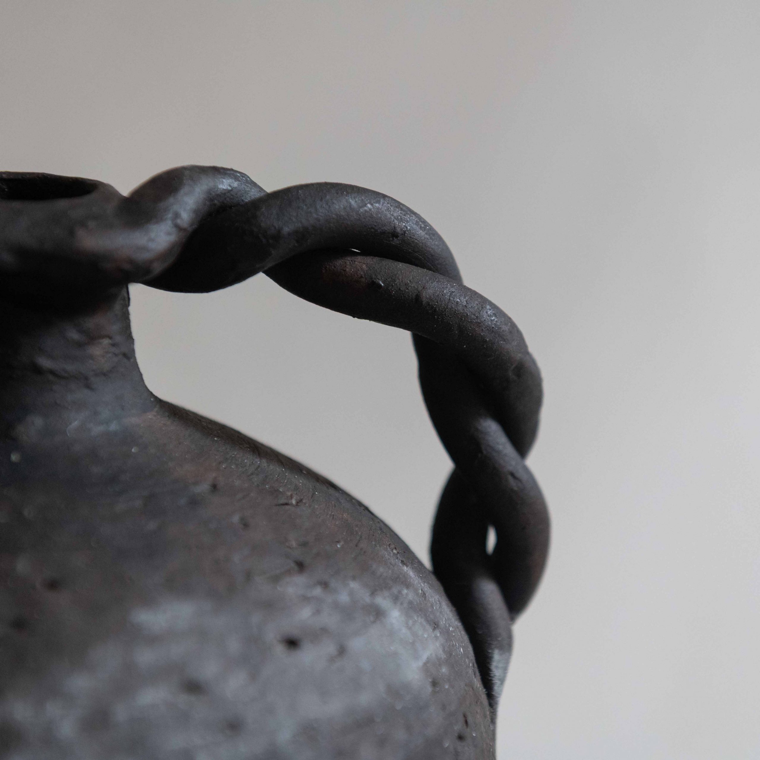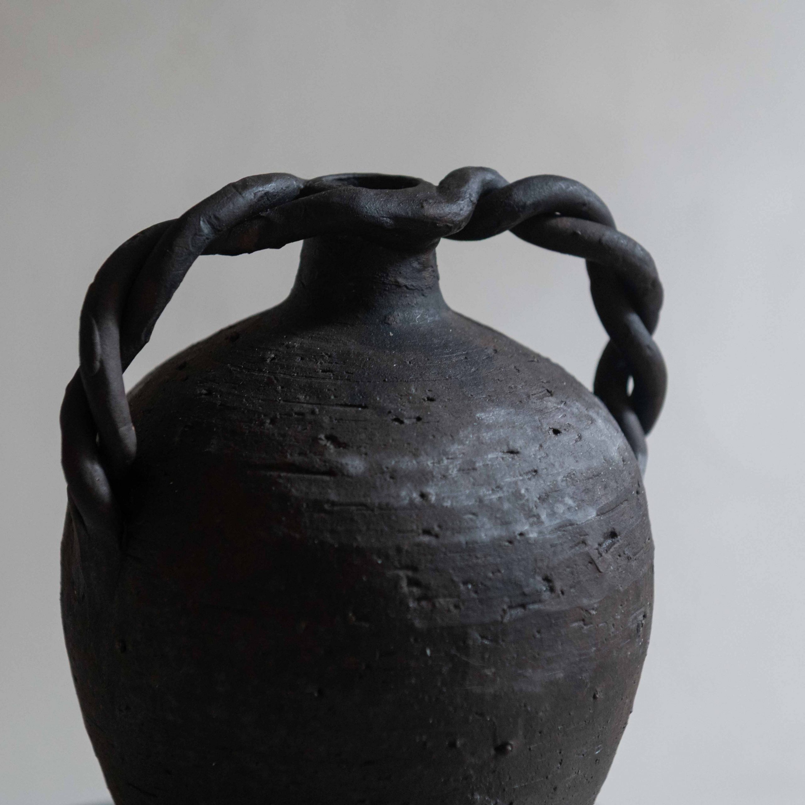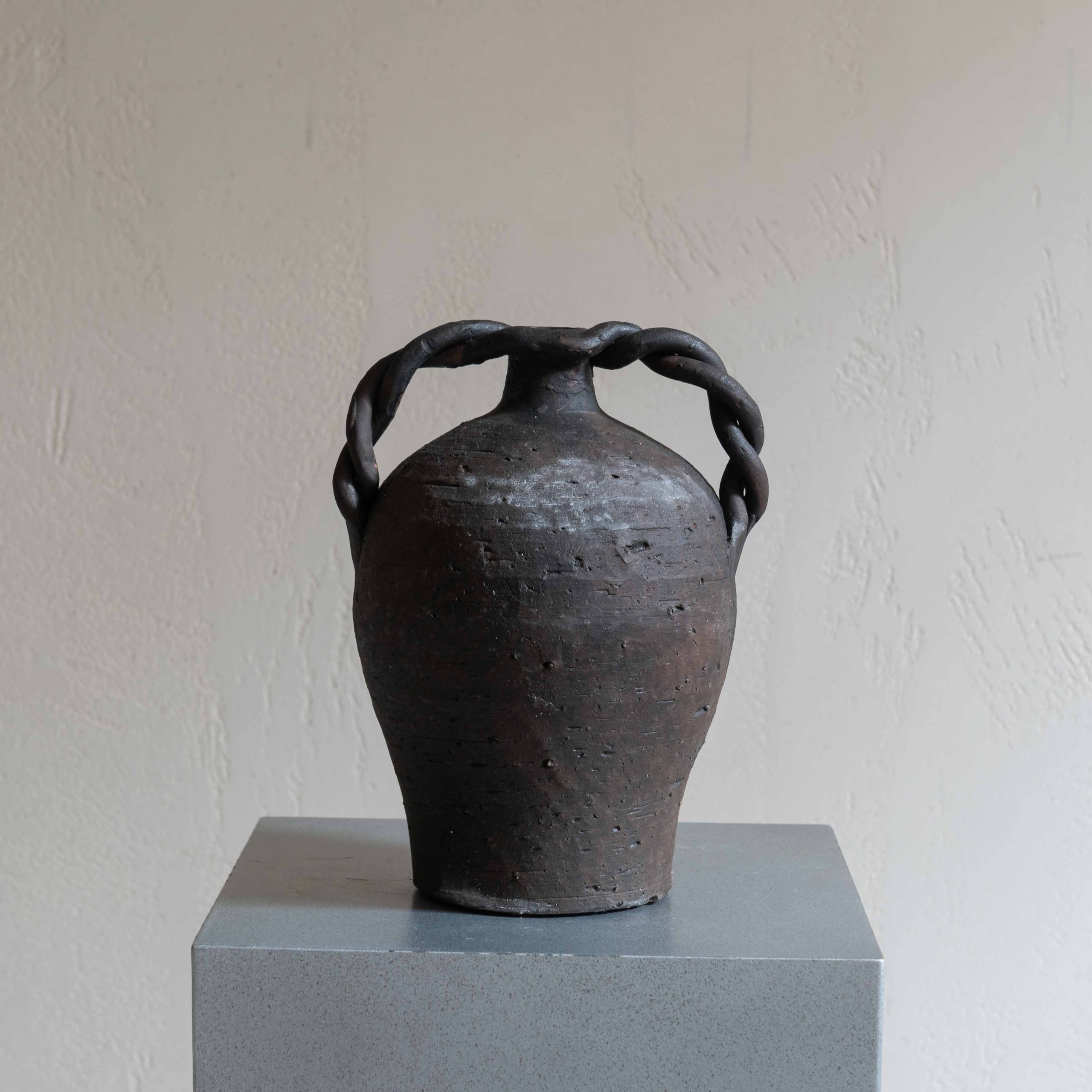 Jarrón de cerámica con asas trenzadas. Con una pátina y un acabado únicos de aspecto antiguo, esta pieza es perfecta para decorar cualquier espacio. El color y el diseño pueden variar ya que cada pieza está pintada a mano.