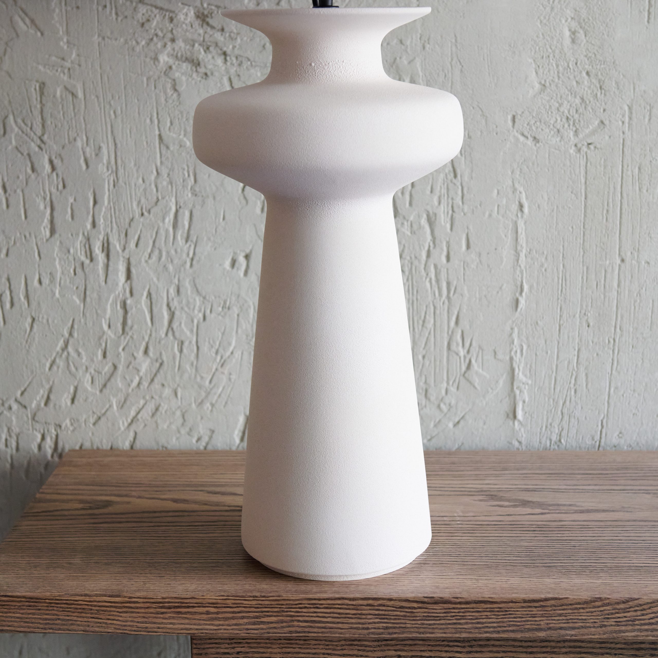 Lámpara de mesa de alfarería blanco hueso. Elaborada en loza y con acabo en blanco hueso, esta lámpara de mesa presenta un sencillo y moderno diseño, atemporal y perfecto para combinar en cualquier ambiente y estilo. Confeccionada en loza, material cerámico conocido por su durabilidad y resistencia, muestra una superficie suave y uniforme. Una combinación perfecta de estilo y funcionalidad, con un acabado limpio y luminoso que realza cualquier espacio. No incluye pantalla.