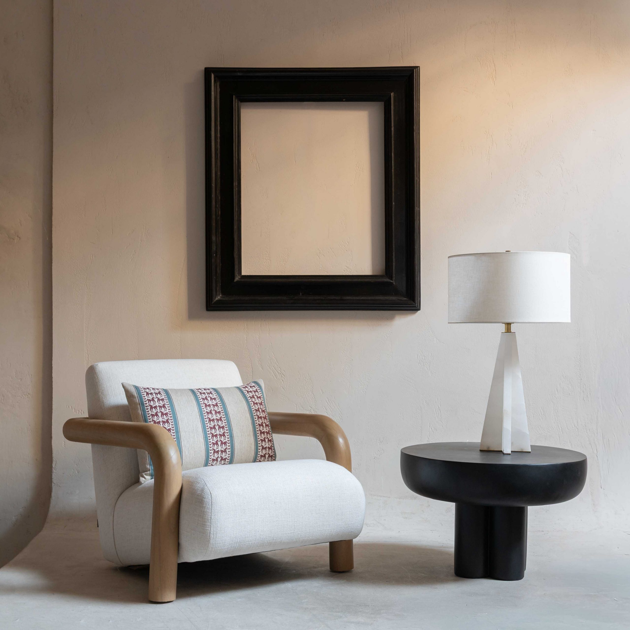 Mesa auxiliar negra de fibra de hormigón. De original diseño y sustentada sobre cuatro patas juntas y cilíndricas, esta mesa resulta versátil e ideal para complementar la decoración de cualquier espacio. Su diseño minimalista y moderno, combinado con la resistencia de un material como el hormigón, le confiere un aspecto elegante y contemporáneo.
