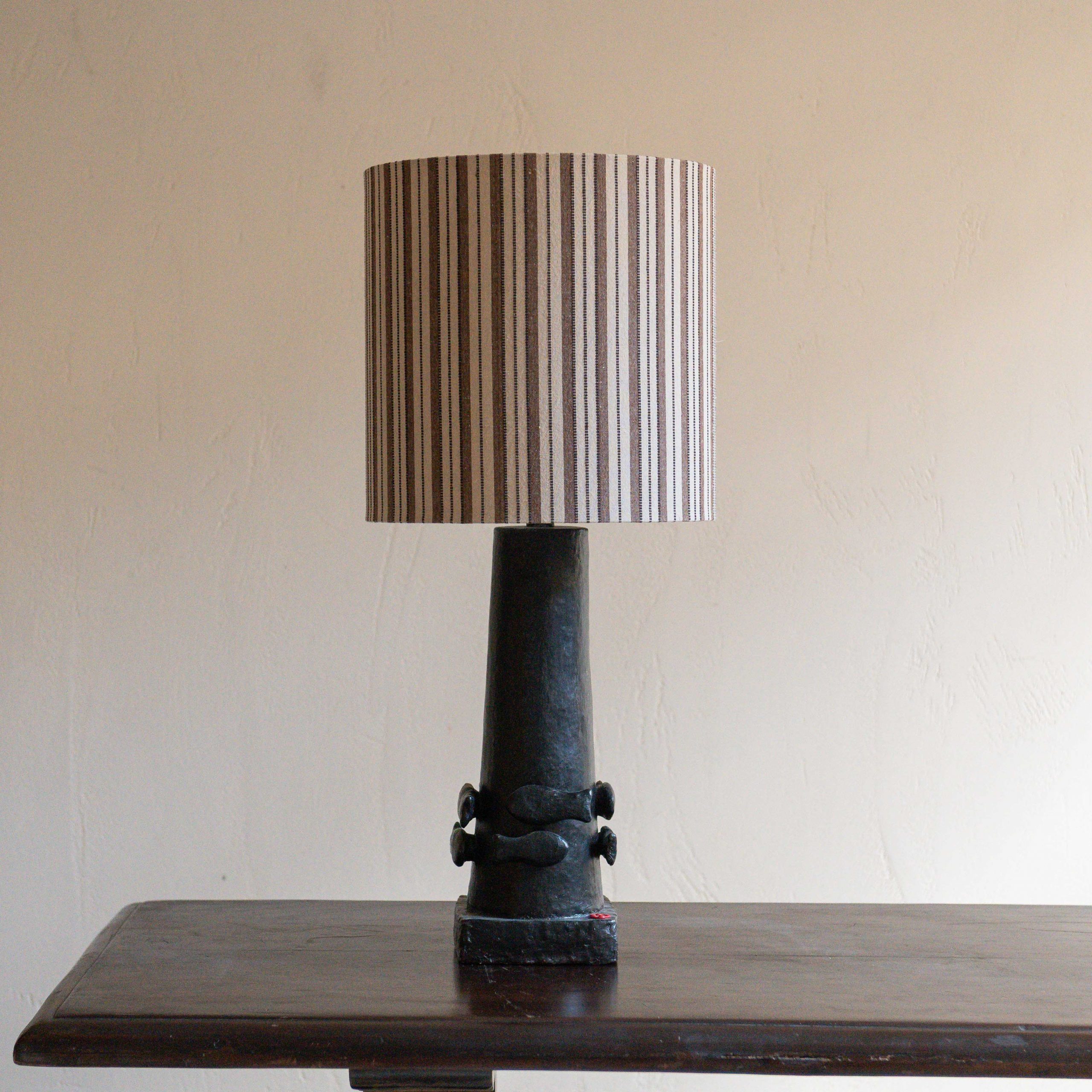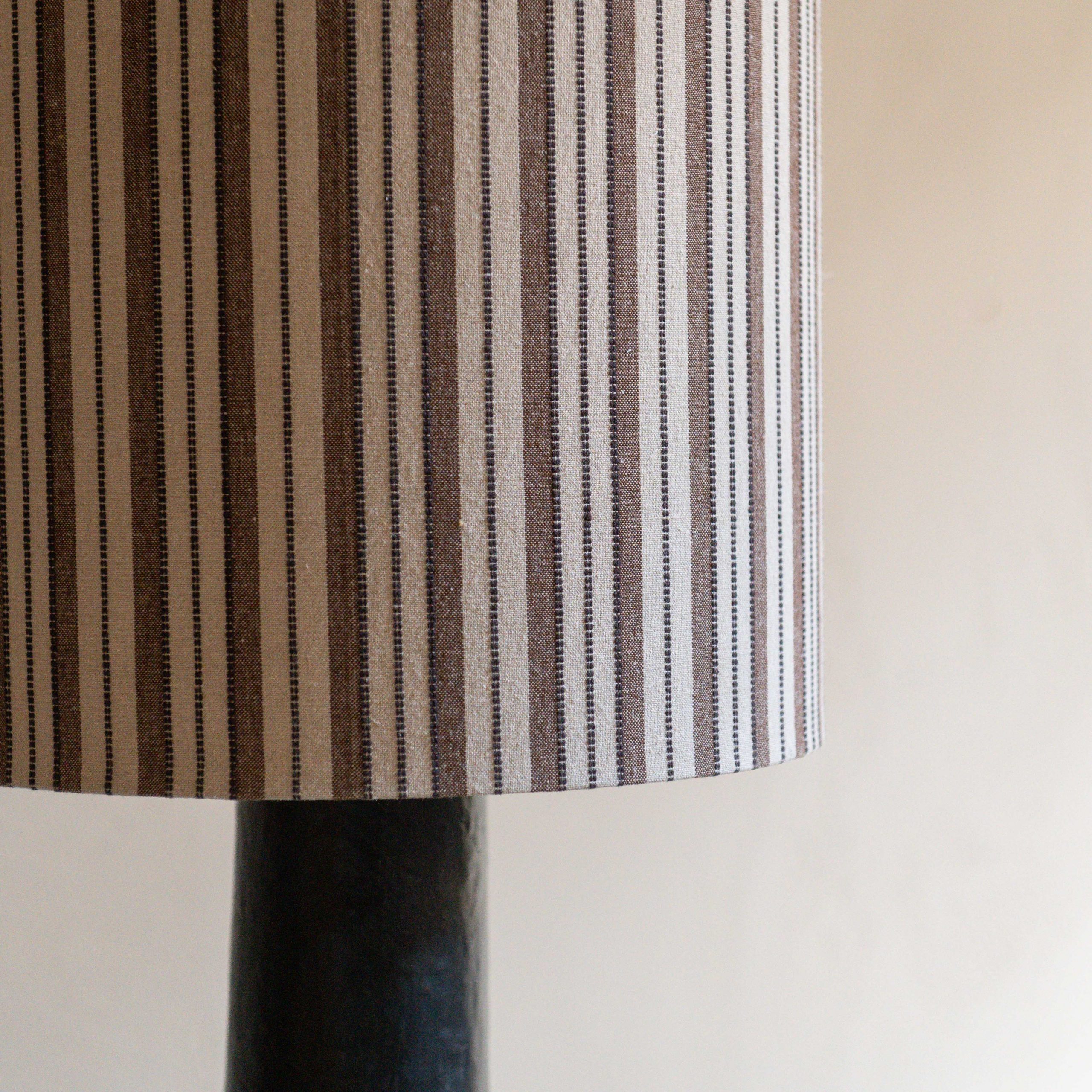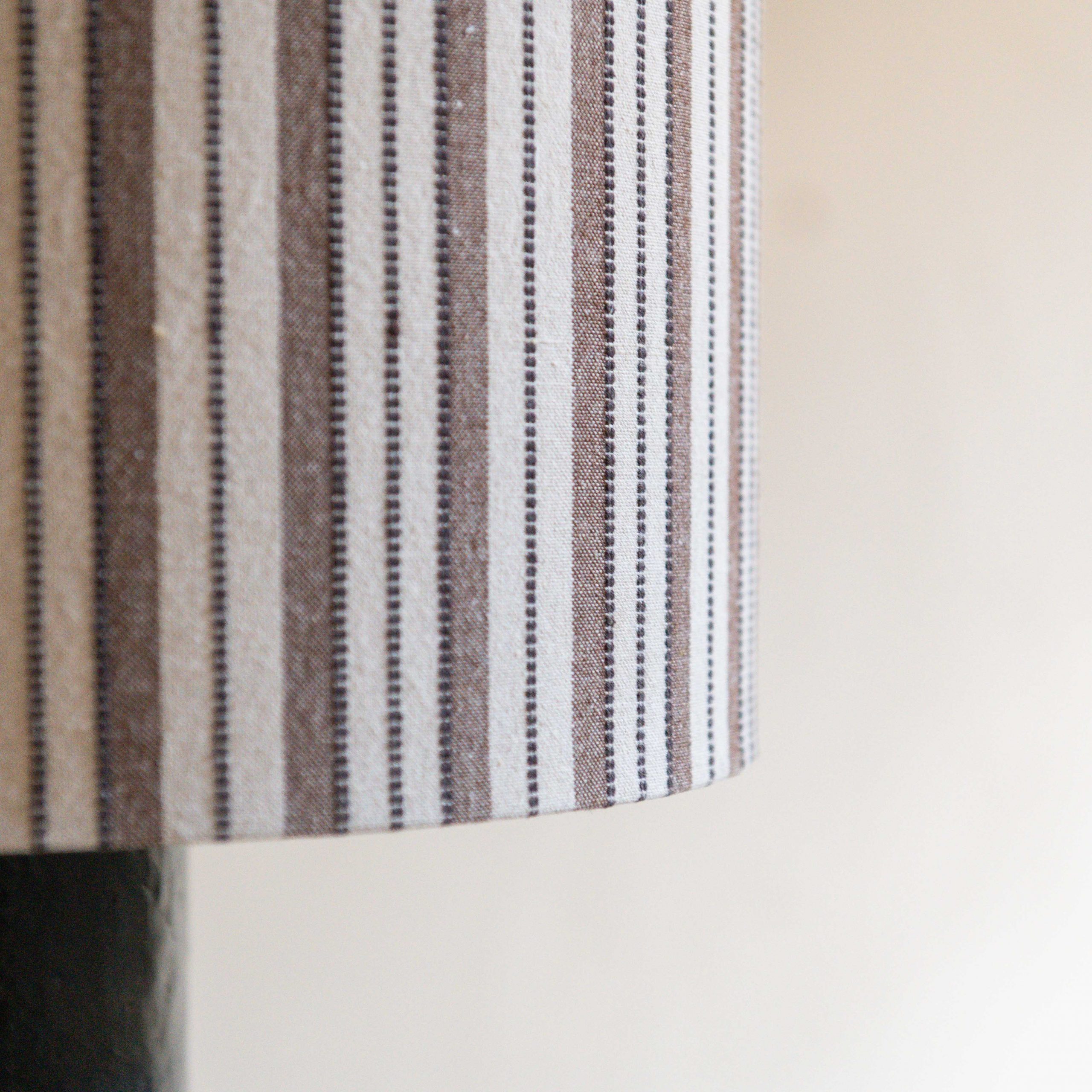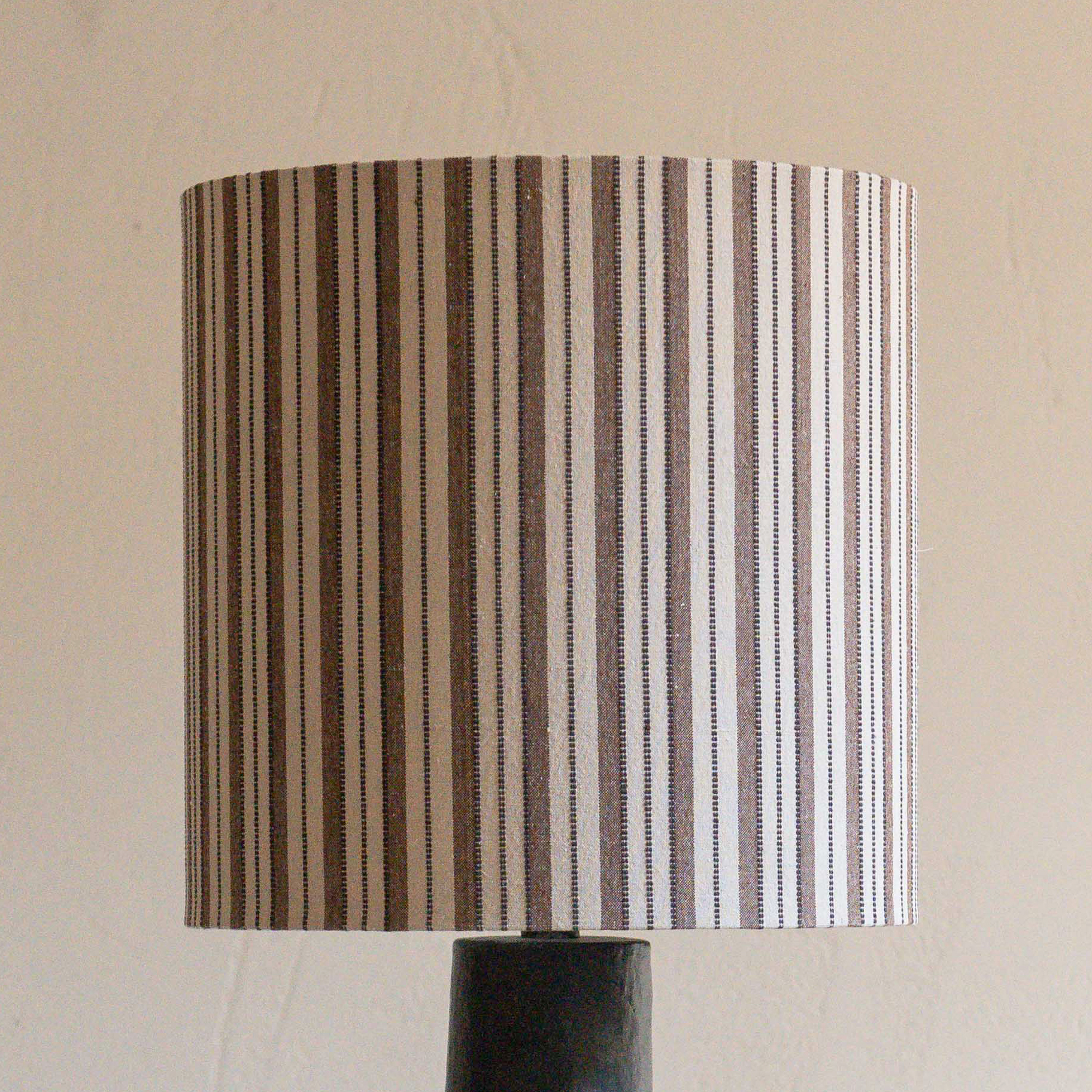 Pantalla color caramelo 35×35 cm. Fabricada en algodón 100 % presenta un bonito diseño clásico a rayas en tonos cálidos.