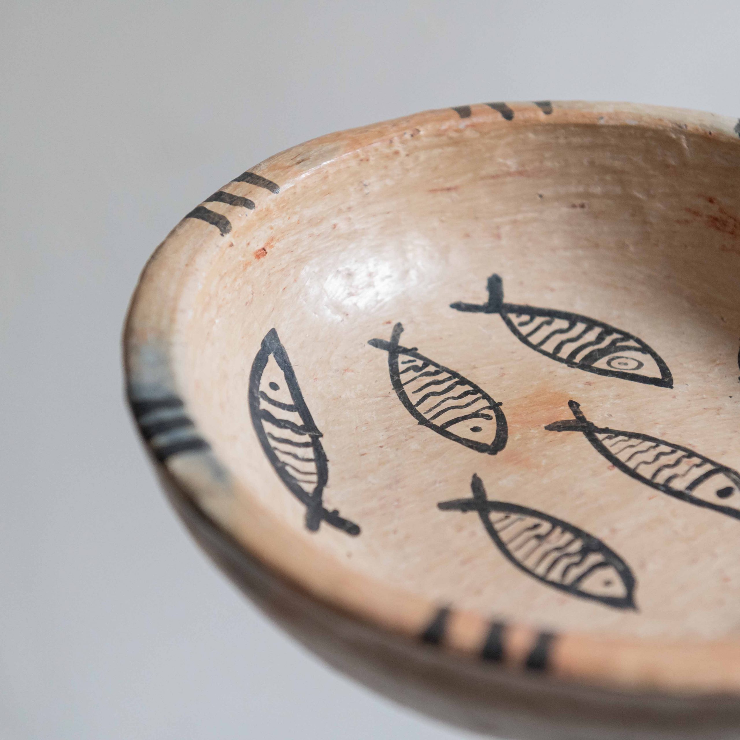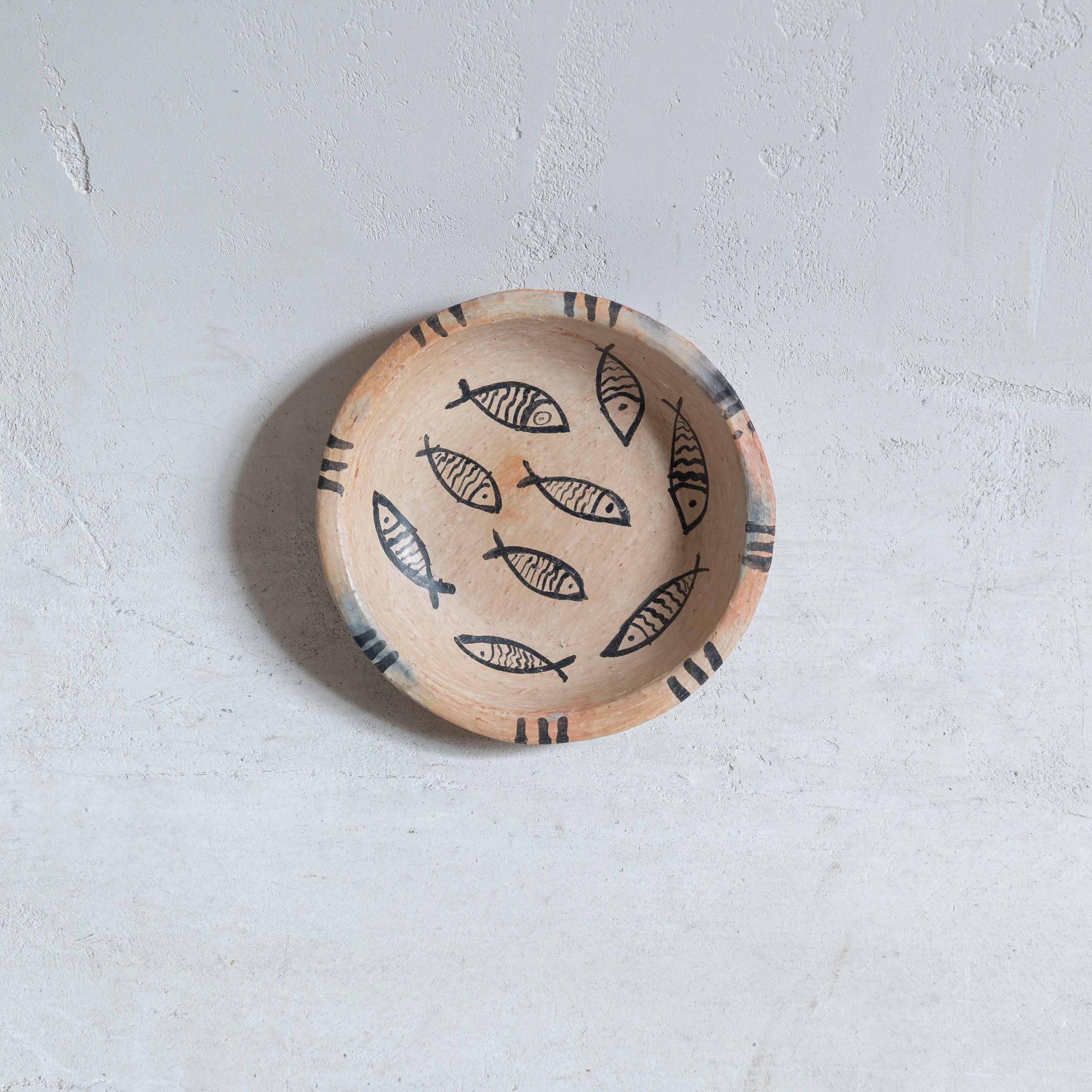 Plato de arcilla artesanal motivo peces pequeños. De origen tunecino y elaborado a mano, cada pieza es única.