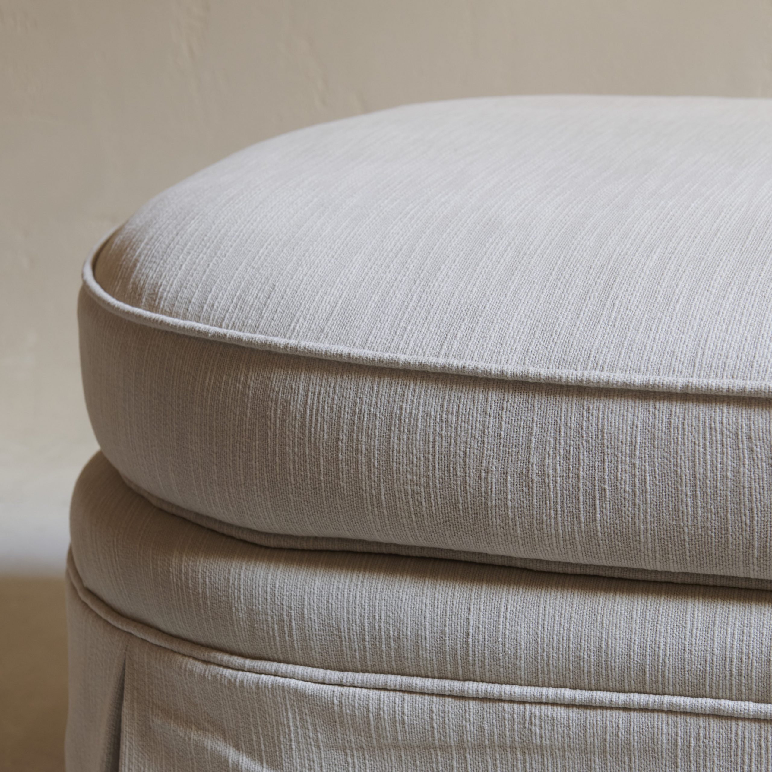 Puf Hilton de lino y algodón beige diseño Tristán Domecq Casa. Una pieza única y original con un suave tapizado beige de lino y algodón. Elegante y confortable, con un faldón que añade un toque clásico y sofisticado. Ideal para relajarse y añadir estilo a cualquier espacio. Al ser un diseño propio, se puede encargar en diferentes colores, telas y con tela propia del cliente. Consultar en shoponline@tristandomecq.com, 915763742 o a través de whatsapp.