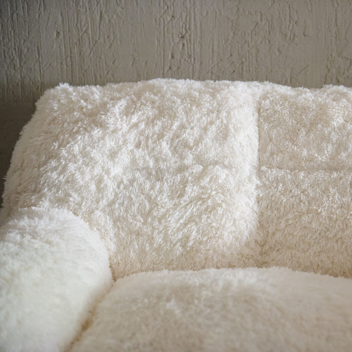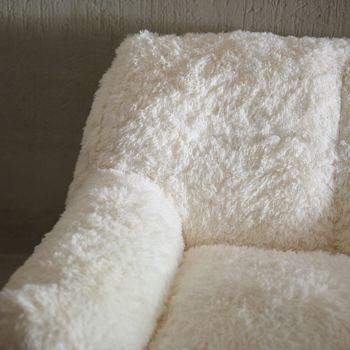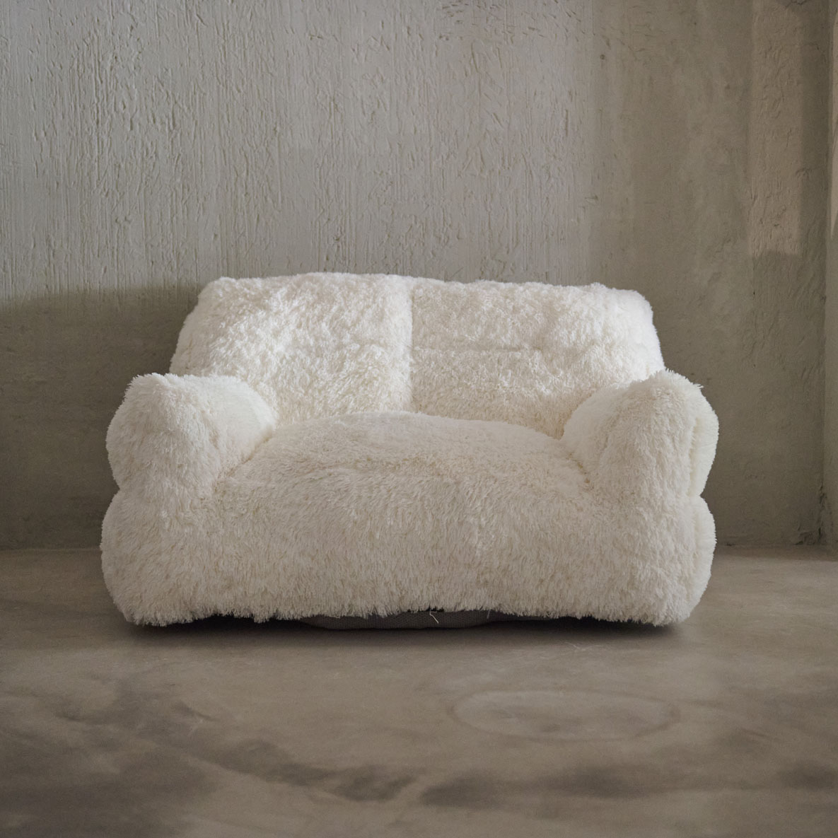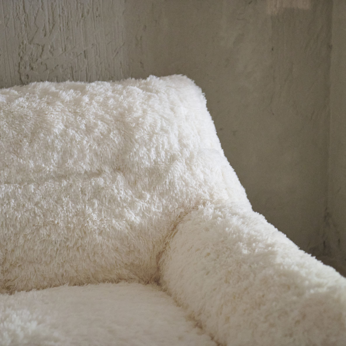 Sillón mullido en blanco natural. Cálido y de líneas limpias y contemporáneas que se equilibran con una generosa textura mullida que invita a hundirse en él. Sus formas ligeramente redondeadas y sus brazos generosamente acolchados, evocan la imagen de una nube acogedora, perfecta para una tarde de relajación total. Ideal para espacios que buscan un toque de serenidad, suavidad y diseño minimalista con una fuerte presencia sensorial.