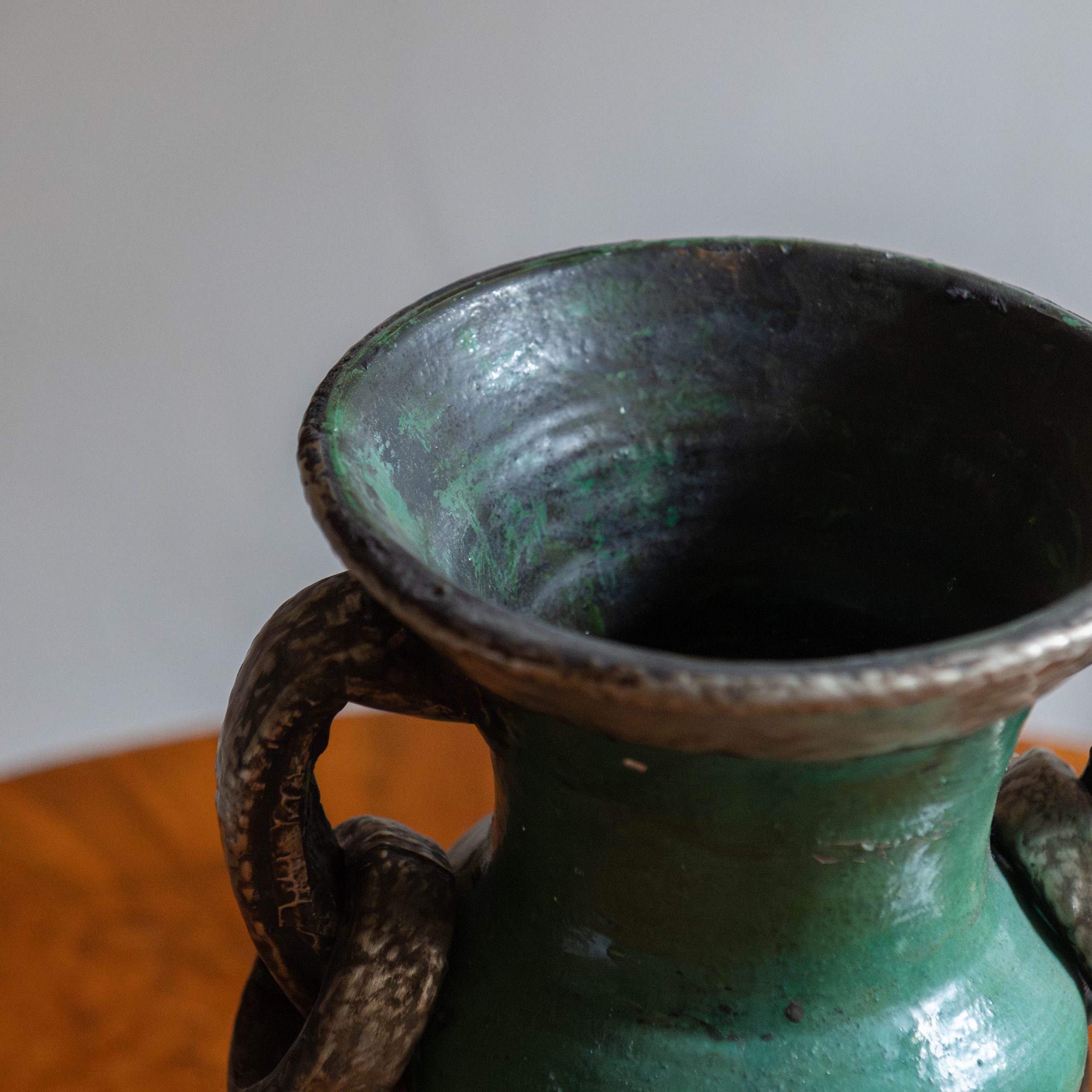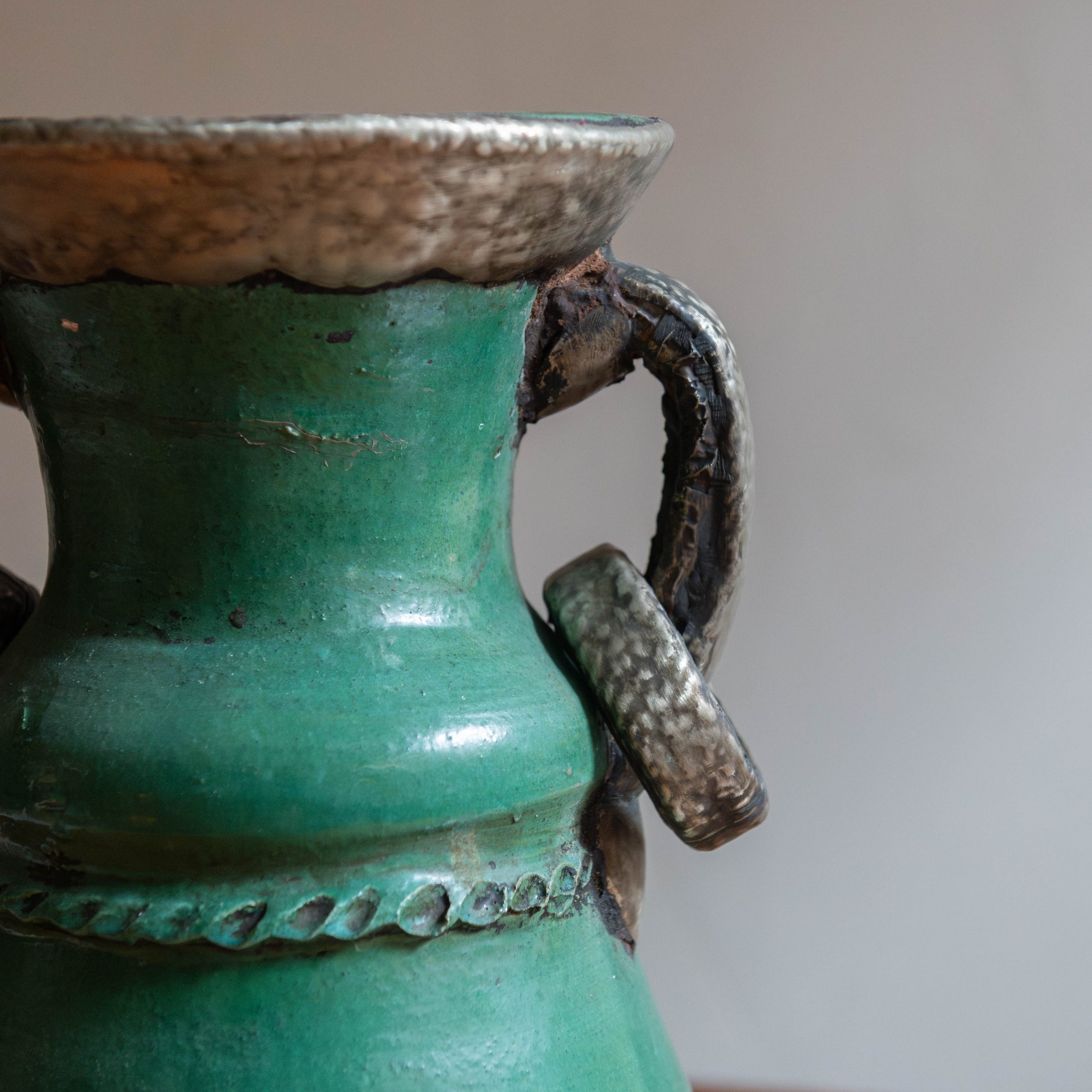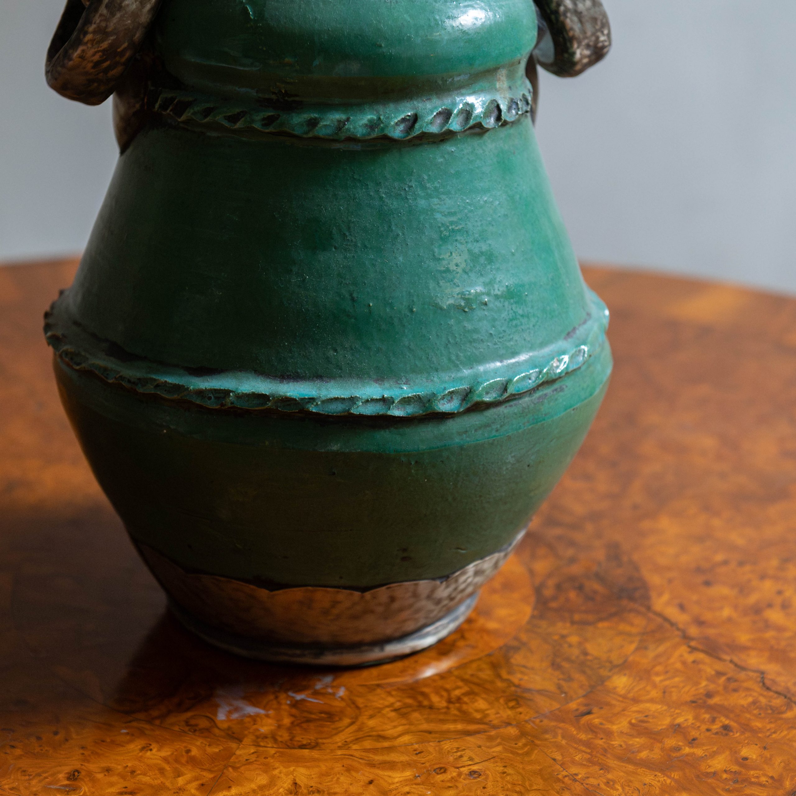 Vasija de cerámica procedente de Tamegroute verde. Una pieza única y original procedente de talleres ancestrales en el sur de Marruecos, donde generaciones de artesanos moldean una cerámica única en su género. Esta vasija hecho a mano en un precioso color verde esmeralda se utilizaba antiguamente para enfriar agua o leche. Hoy es una pieza decorativa muy especial y con historia.