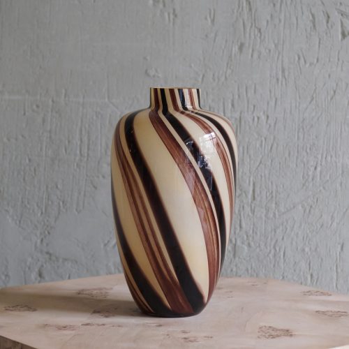 Jarrón de vidrio ahumado. Elaborado con la técnica milenaria del vidrio soplado, este original jarrón presenta una forma única, de hecho no habrá dos iguales. Elegante y sobrio con un acabado ahumado.